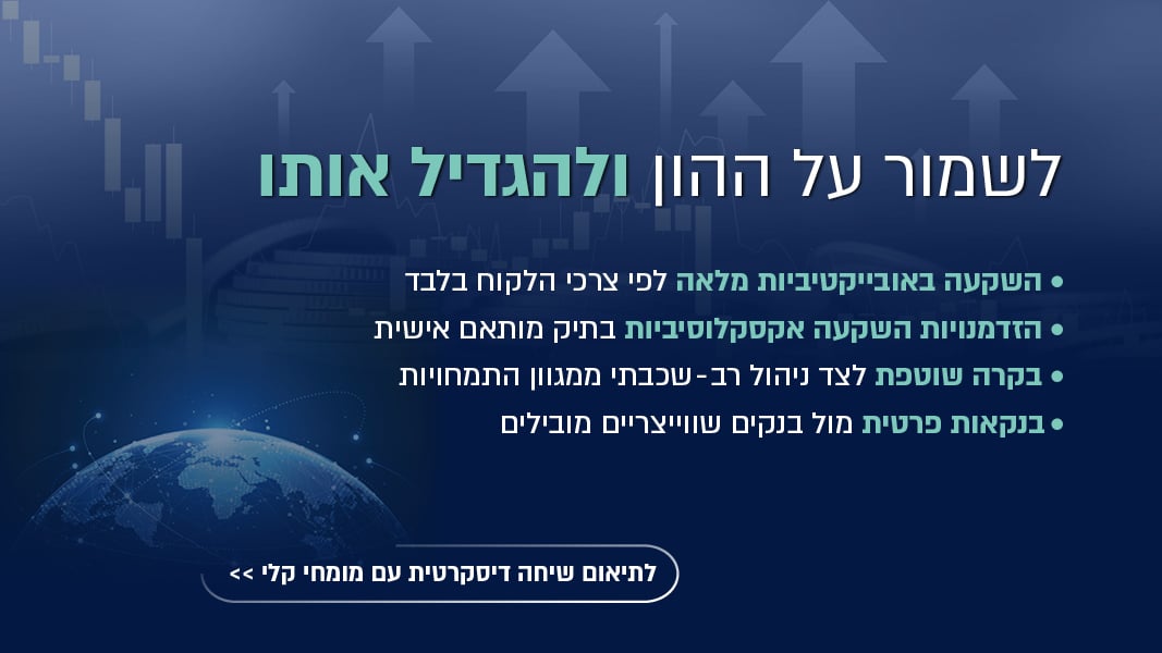 - ביזור גיאוגרפי וגמישות: השקעות גלובליות מחוץ לישראל מקנות שקט נפשי ויכולת פעולה בזמן תרחישי קיצון – מלחמה, רגולציה מחמירה או אי ודאות כלכלית.